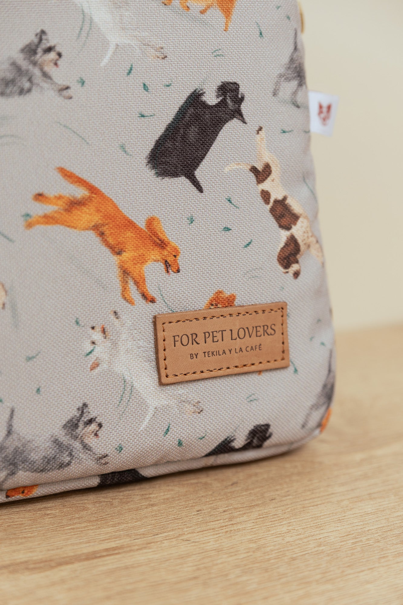 Estuche para portátil estampado, con forro interno en tela antifluídos, cremallera dorada y bolsillo externo. Detalle contramarcado en cuero 100%. Este producto está ilustrado a mano con diferentes razas de perros como: Pomerania, Scottish terrier, Cocker, Schnauzer, Springer Spaniel y Westie. ¡Busca tu peludito!
