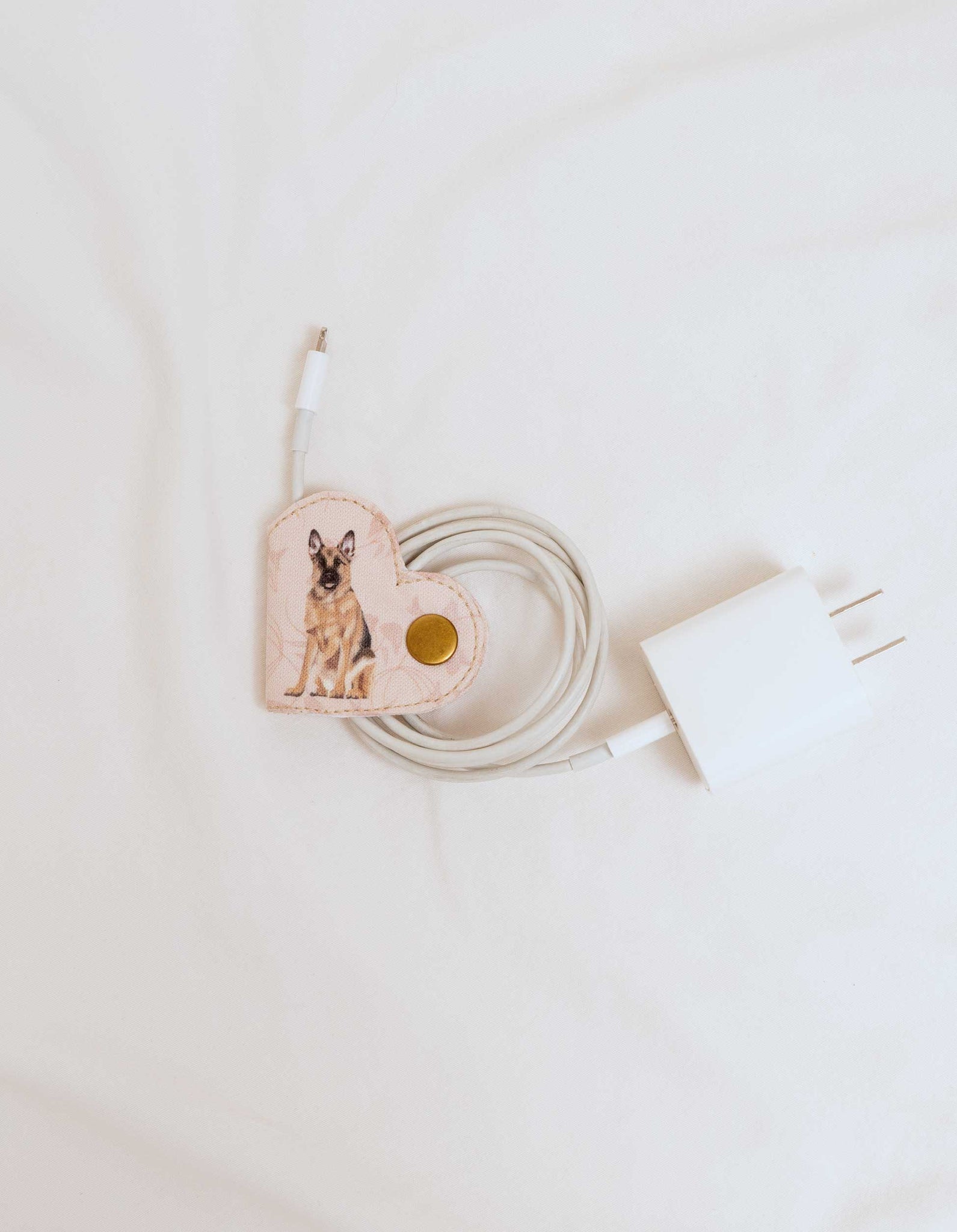 Este sujetador de cable es una solución práctica y divertida para mantener tus cables organizados y libres de enredos. Está hecho de poliéster duradero y cuenta con una encantadora ilustración de pastor aleman . Su diseño compacto y ligero lo hace fácil de llevar en tu bolso o mochila.