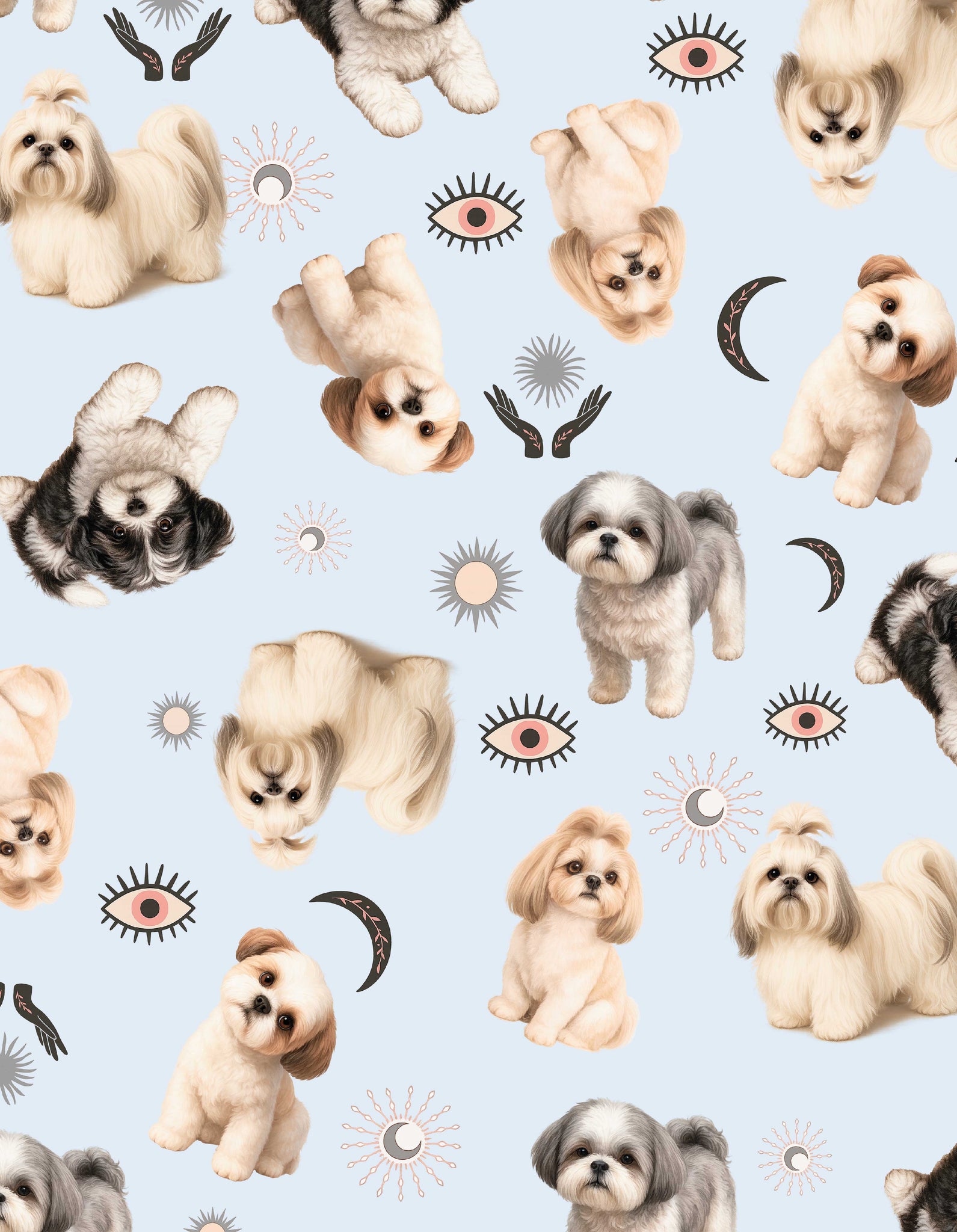 Pijama de pantalón largo y camisa de botones manga corta, con un estampado adorable de ilustraciones de perritos Shih Tzu hechas a mano.