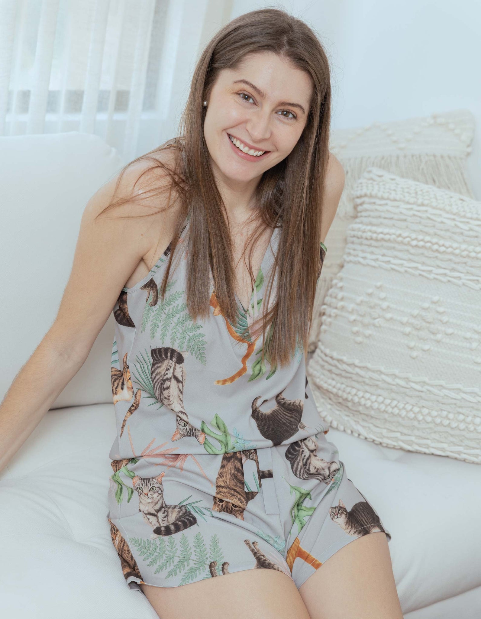 PIJAMA SHORT GATOS RAYADOS GRIS TS0039