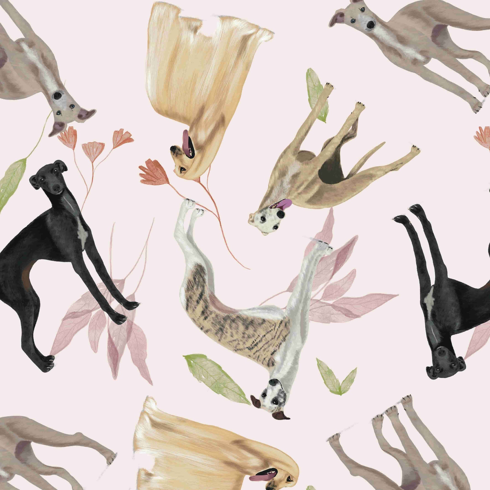 Pijama de pantalón largo y camisa de botones manga corta, con un estampado adorable de ilustraciones de perritos galgos hechas a mano.