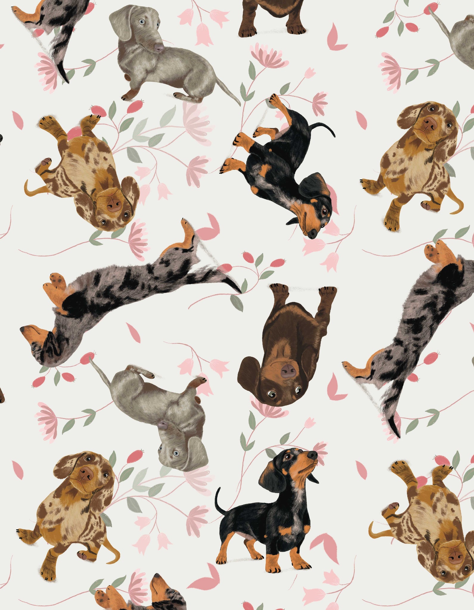 Pijama de pantalón largo y camisa de botones manga corta, con un estampado adorable de ilustraciones hechas a mano de perritos Salchicha.